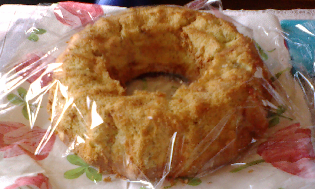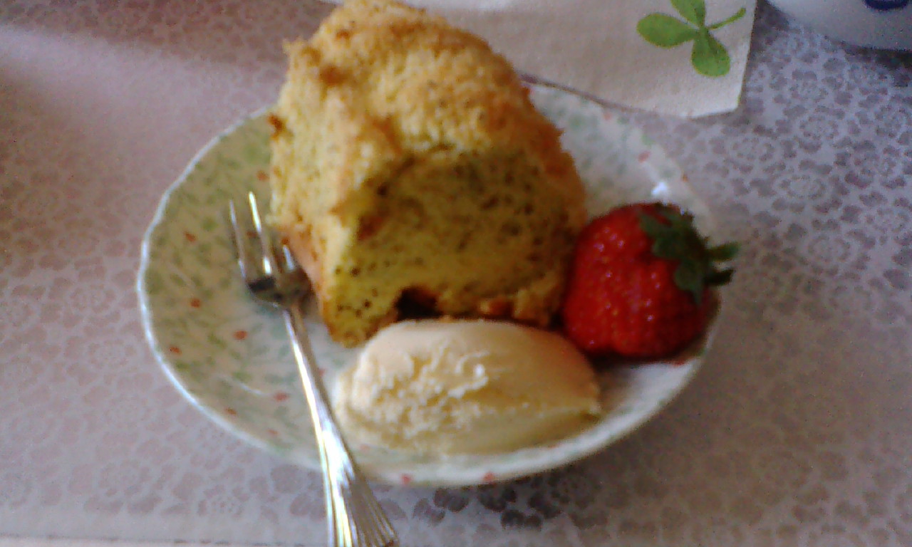 シフォンケーキの型がないからリングケーキの型で作ったらはずれなくて、ちょっとボロボロ。。