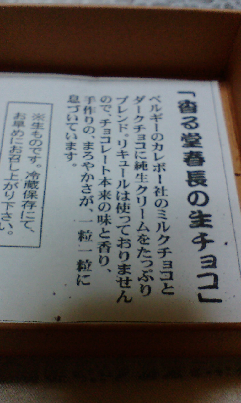 うちの課長がバレンタインに全員にあげた(太っ腹!)香る堂春長の生チョコ。