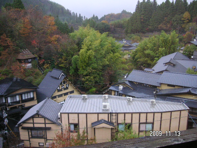 周りは山に囲まれ、旅館が立ち並ぶ風流ある黒川温泉。