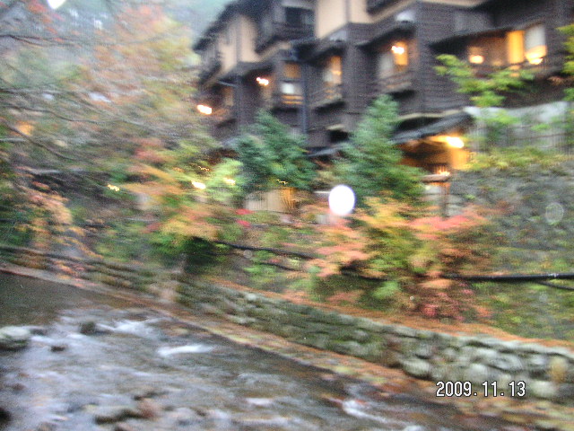 紅葉にはまだ少し早いけど、川に紅葉に温泉旅館。